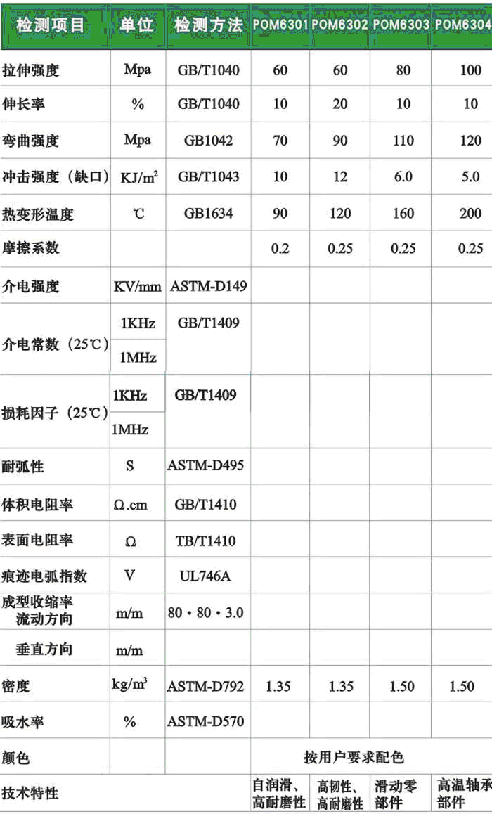 應用: 耐磨件及密封材料、泵體、閥門、軸承、軸承支架、活塞環及齒輪等。
