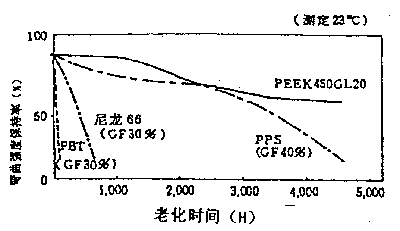 另外其在250℃的老化試驗結果如圖5所示。它表明不僅一般樹脂無法比,就是比公認的長期耐熱性好的PPS也要穩定。