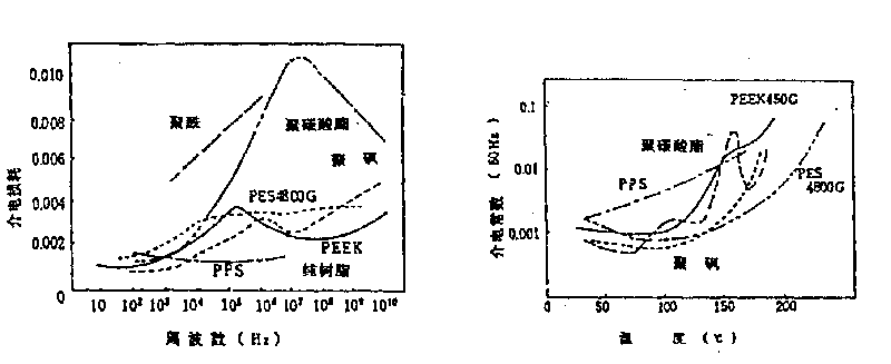 PEEK具有良好的電絕緣性能,并可保持到很高的溫度范圍。其介電損耗在高頻情況下也很小。其介電損耗的頻率依賴性和溫度依賴性及體積電阻的溫度依賴性分別如圖11,12,13所示。