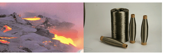 是以火山巖為原料經(jīng)1500℃高溫熔融后快速拉制而成的連續(xù)纖維,其外觀為金褐色,屬于非金屬的無機(jī)纖維。